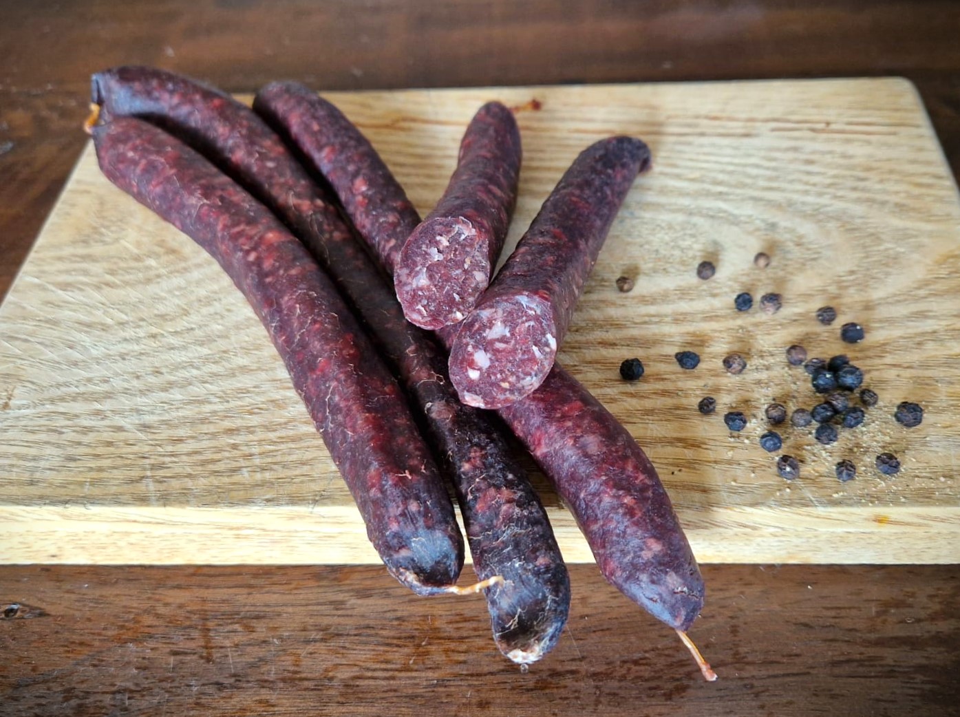 2 Paar Wasserbüffel Pfefferbeißer (185g) aus 100% Wasserbüffelfleisch von Wilhelmsglücksbrunn aus Creuzburg.
